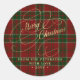 Sticker Rond Joyeux Noël or script rouge vert plaid tartan