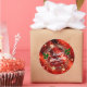 Sticker Rond Joyeux Noël, rouge étincelant et or Design Cla