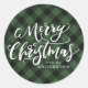 Sticker Rond Joyeux Noël rustique Script vert Plaid