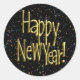 Sticker Rond Joyeux Nouvel An - Texte Or sur Confetti Noir