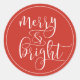 Autocollant de Noël moderne avec l'expression "joyeux et lumineux" dans une typographie blanche cahier assis sur un arrière - plan rouge.