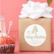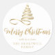 Sticker Rond Joyeux script de Noël Gold Ribbon Tree