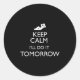 Sticker Rond Keep Calm I'll Do It Tomorrow Lazy