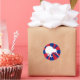 La forme blanche d'un kiwi contre un design bleu et rouge. Le rouge, le blanc et le bleu sont les couleurs du drapeau néo-zélandais.
