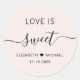Un autocollant rose pâle pour vos bonbons mariages avec "l'amour est doux" en lettres propres et un script chic avec des swashes, vos prénoms unis par un coeur et votre date mariage.