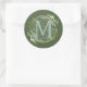 Sticker Rond Lettre M Monogramme Feuilles verts botaniques init