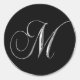 Sticker Rond Lettre Monogramme M Sliver sur sceau Mariage noir