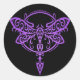 Cette conception de libellules tribales est décorée de tourbillons complexes et de motifs de points. Les lignes délicates sont peintes d'un violet profond et surligné, donnant à l'image une brillance subtile. Ce motif symétrique a un cercle mince derrière la libellule, avec de minuscules points le long du bord extérieur. L'arrière - plan de cet aimant est fini avec un noir pur créant un contraste agréable. Ce design stylisé est une représentation saisissante de cette merveilleuse petite créature volante.