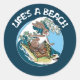 Sticker Rond Life is a Beach - Rabbit and Turtle Surfing