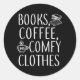 Sticker Rond Livres Café Comfy Écrivain Littéraire Lecture Livr