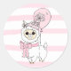 Sticker Rond Llama d'anniversaire rose avec ballon
