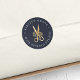 Étiquette votre correspondance ou vos produits avec ces autocollants chic qui correspondent à notre suite de marque du logo des ciseaux floraux pour coiffeurs et salons. Les autocollants bleu marine riches présentent au centre un faux ciseaux doré, avec deux champs de texte courbant autour de l'extérieur, en lettres blanches classiques.