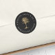 Étiquette votre correspondance ou vos produits avec ces stickers chic qui correspondent à notre suite de marque logo Gold Palm Tree pour coiffeurs et salons. Les autocollants gris charbon de bois sont munis d'une fausse illustration de palmier en feuille d'or au centre, avec deux champs de texte courbant autour de l'extérieur, en lettrage blanc classique.