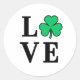 Sticker Rond LOVE Clover Shamrock Irlande St Patrick's Party