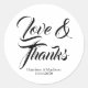Love & Thanks script personnalisé mariage faveurs élégant Stickers Classic rond noir et blanc avec texte entièrement personnalisable