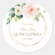 Sticker Rond Luxe Rose Fleurs Blanches Or Quinceañera