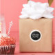 Étiquette mariage rond minimal et intemporel en calligraphie noir et blanc avec de minuscules coeurs dorés. Une touche classe pour les faveurs de mariage, les sacs cadeaux ou les enveloppes scellées.