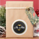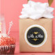 Étiquette mariage rond minimal et intemporel en calligraphie noir et blanc avec de minuscules coeurs dorés. Une touche classe pour les faveurs de mariage, les sacs cadeaux ou les enveloppes scellées.