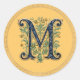 M monogramme bleu-or orné design floral orné avec cadre cercle or.