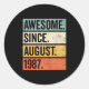 Sticker Rond Magnifique depuis août 1987 Anniversaire Retro