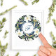 La couronne de magnolia blanche entoure bleu, personnalisable monogramme initial. Arrière - plan de bleu céleste, cuir gaufré végétalien à l'allure cousue.
