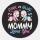 Maman Rose Ou Bleue Aime Votre Bébé Genre Reveal Partie Douche Drôle Design Cadeau Classic Round Sticker Classic Collection.
