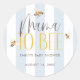 Sticker rond classique Mama to Bee Honey Baby shower bleu avec un arrière - plan rayé chic et des abeilles délicates aquarelles au miel.