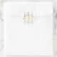 Sticker Mama to Bee Honey Green Baby shower Classic Round Sticker présente un arrière - plan rayé chic et des abeilles délicates à l'aquarelle.