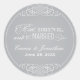 Monogramme rond mariage préférez autocollant avec le thème "Mangez, Buvez et Soyez Marié" en argent / gris et blanc. Personnalisez avec les noms des mariés et des mariés et la date du mariage.