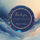 Élevez votre fête côtière avec notre autocollant rond personnalisable, un complément parfait à votre journée spéciale. Inspiré par les teintes bleues apaisantes de l'océan et les vibes côtières sereines, ce étiquette de remerciement donne le ton pour une expérience inoubliable. Orné d'élégants coquillages et de motifs d'animaux marins, ainsi que d'oeuvres d'art génératives dynamiques inspirées de la côte, il ajoute une touche de sophistication à tout emballage. Personnalisez avec votre monogramme ou nom et mariage merci texte pour une touche vraiment unique.