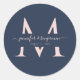 Sticker Rond Mariage bleu marine Monogramme Enveloppe Phoques