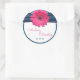 Sticker Rond Mariage bleu marine rose Gerbera Daisy