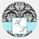 Sticker Rond Mariage bleu Monogramme Damask Seal