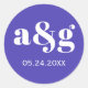Sticker Rond Mariage bleu violet monogramme simple et élégant