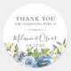 Fleurs d'aquarelle bleu et jaune chic, aux branches botaniques vertes délicates, autocollant personnalisé pour mariage.