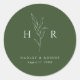 Monogramme vert simple minimal Mariage botanique classique rond Sticker comporte vos initiales autour d'une ligne dessinant botanique, ainsi qu'une disposition de type classique moderne.