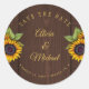 Sticker Rond Mariage de bois brun de tournesol rustique enregis