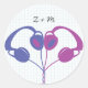 Sticker Rond Mariage de coeur rétro avec casque Indie (violet/b