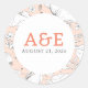 Autocollants monogrammes de couleur de pêche minimaliste fleur sauvage