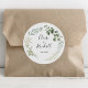 Cet autocollant rond mariage classique de feuillage vert d'été est parfait pour une simple réception de mariage. Le design est composé de feuilles vert aquarelle et de fleurs blanches entassées dans des bouquets artistiques