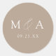 Élégant autocollant de mariage monogramme avec vos initiales affichées en lettres blanches sur un arrière - plan taupe (ou la couleur de votre choix). Personnalisez les autocollants de mariage modernes avec votre date de mariage ci-dessous. Les autocollants taupe monogramme sont parfaits pour sceller les enveloppes de faire-part de mariage, les faveurs de mariage, et plus encore!