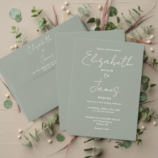 Simple Sage Green Script Wedding Invitation SuiteConçu par Pure Piglet Designs