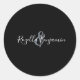 Elégant mariage de script moderne minimaliste Classic Round Sticker modèle de 2 côtés carte avec texte de calligraphie moderne. Ce script et la base sombre donnent une apparence et des sensations simples et minimalistes. Les noms sont personnalisables. Visitez mon magasin pour voir plus de trucs mariages pour ce design !