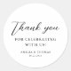 Cet autocollant rond mariage présente un design simple et élégant avec un mélange de polices de script et de serif. Le texte noir sur un arrière - plan circulaire blanc crée un look propre, intemporel et sophistiqué.