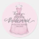 Jolie robe rose de femme d'honneur, Une idée délicieuse pour les cadeaux pour la mariée et sa fête de mariage. Personnalisé avec une jolie robe de style vintage, avec des fleurs simples et un script moderne. Quelle merveilleuse façon de dire merci à votre demoiselle d'honneur pour avoir partagé votre journée spéciale avec elle. Ce design comprend un autocollant mariage bridal étiquette, un cadeau de douche nuptiale merci, un étiquette élégant et créatif, un vintage fantaisiste classe, une robe moderne simple élégante, un script d'écriture manuscrite calligraphie, minimaliste minimaliste de la typographie de mariée, une personnaliser personnalisée girly chic, un créer le vôtre, une faveur formelle classique