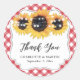 Sticker Rond Mariage de tournesol rouge En vichy rustique Merci