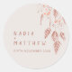 Dessin simple moderne et aquarelle art autocollants de mariage d'hiver dans les tons brun, bronzé, orange, blanc et terre cuite. Personnalisez ces autocollants de mariage avec vos propres noms de couple et date mariage. Idéal pour un simple mariage en automne ou en hiver. Autres articles correspondants disponibles. Croquis d'automne d'herbes et de baies et d'aquarelle libre par Sarah Trett pour www.mylittleedenweddings.com