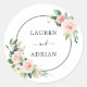 Cet autocollant mariage présente des fleurs d'aquarelle peintes en rose, blanc et vert roux avec un cadre circulaire. Pour une personnalisation plus avancée de cette conception, cliquez sur le lien "Customiser plus loin".