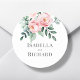 Autocollants de mariage blanc et propre personnalisables, avec un joli bouquet floral rose vif.