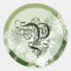Sticker Rond Mariage floral vert Monogramme P Sceau